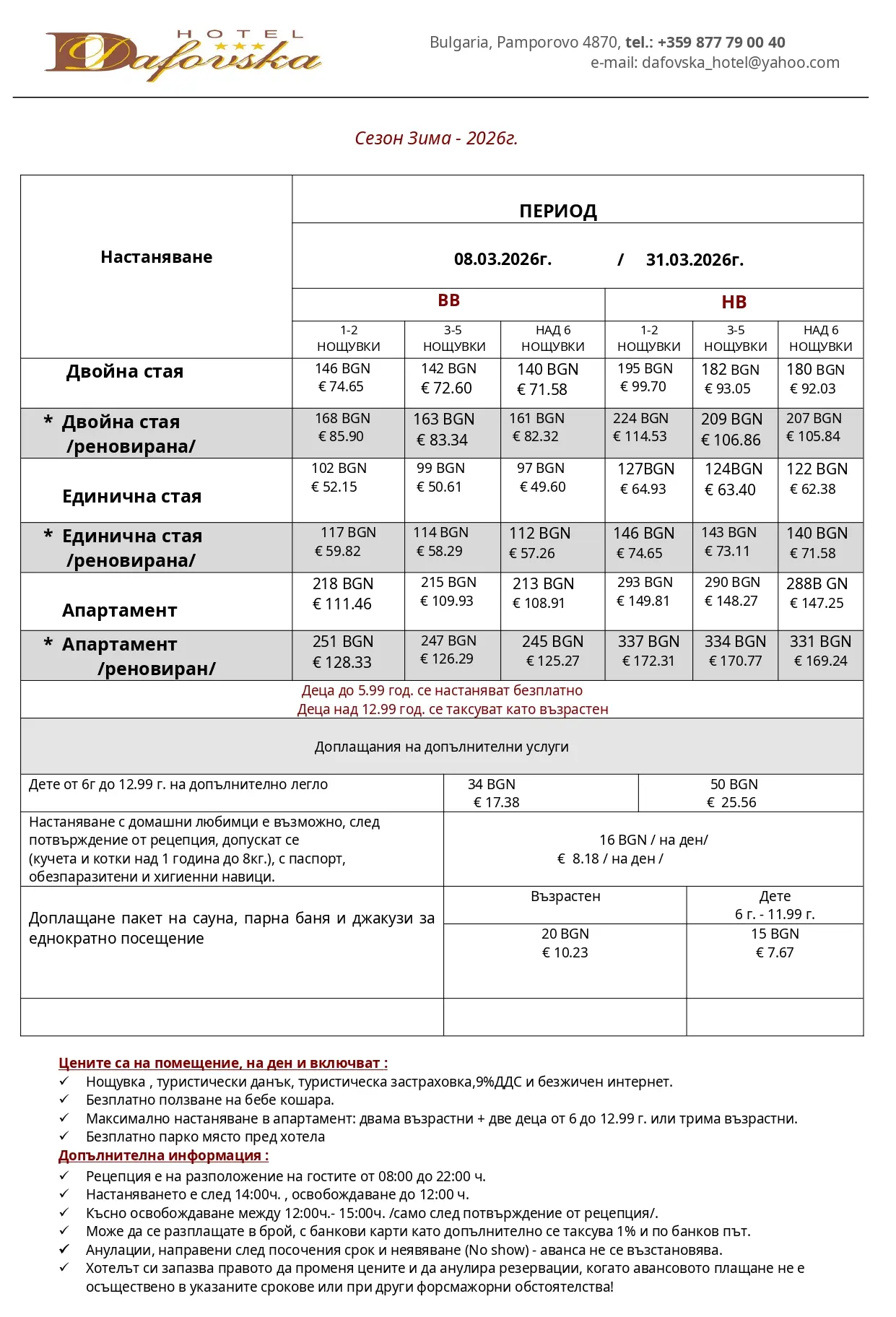 ЗА НАСТАНЯВАНЕ ПРЕЗ ПЕРИОДА ПОСОЧЕН ОТ ВАС