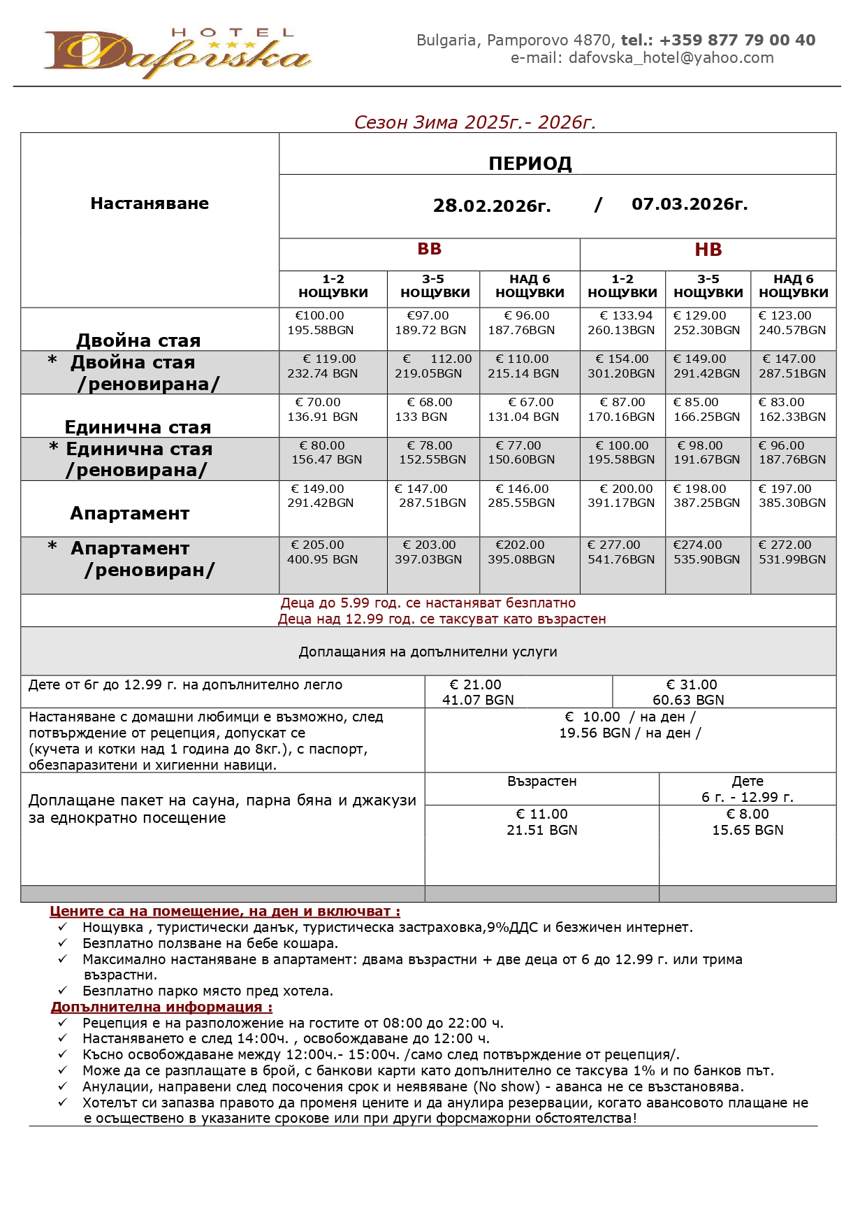 ЗА НАСТАНЯВАНЕ ПРЕЗ ПЕРИОДА ПОСОЧЕН ОТ ВАС