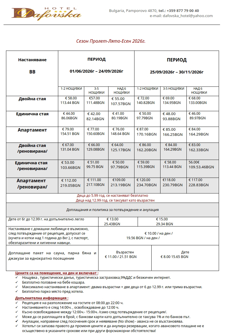 01.06.2026-24.09.2026 25.09.2026-30.11.2026 ЗАПОЗНАЙТЕ СЕ С НАШИЯ ЦЕНОРАЗПИСЗА НАСТАНЯВАНЕ ПРЕЗ ПЕРИОДА ПОСОЧЕН ОТ ВАС