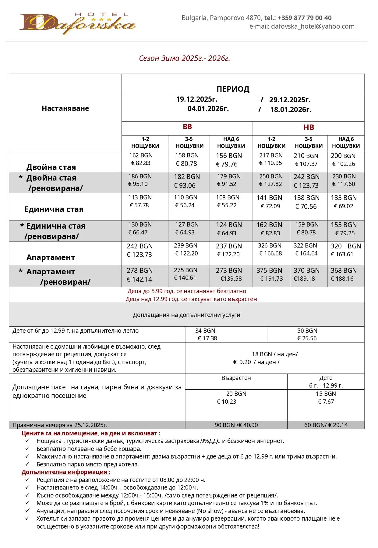 19.12.2025-29.12.202504.01.2026-18.01.2026 РАЗПОЗНАЙТЕ СЕ С НАШИЯ ЦЕНОРАЗПИСЗА НАСТАНЯВАНЕ ПРЕЗ ПЕРИОДА ПОСОЧЕН ОТ ВАС